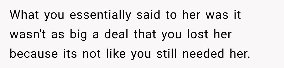 It’s worth noting that the husband is 40 and still has both of his parents. He’s never experienced that kind of loss. His mistake wasn’t ignorance – it was assuming logic could substitute for lived experience.