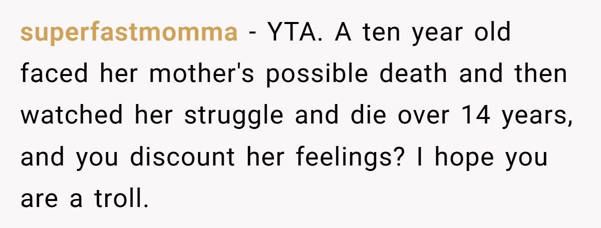 “I’m so sorry for the way my comment hurt you. I wasn’t thinking about your experience or your pain. I understand now that 24 isn’t ‘old’ to lose a parent—especially after watching your mom suffer for so long. You deserved comfort, not a cold observation.”