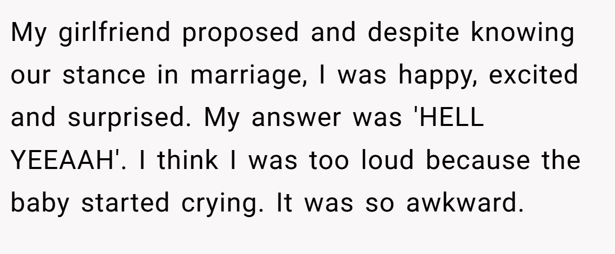 Talk about a proposal that made waves—literally and figuratively! This Redditor’s enthusiastic “HELL YEEAAH” during his girlfriend’s beachside proposal woke a nearby newborn, earning glares from its parents. His retort, questioning why they brought a baby to a public beach, escalated the tension. Is he wrong for his loud joy, or are the parents overreacting in a shared space?