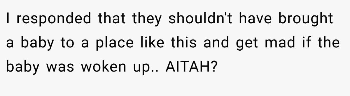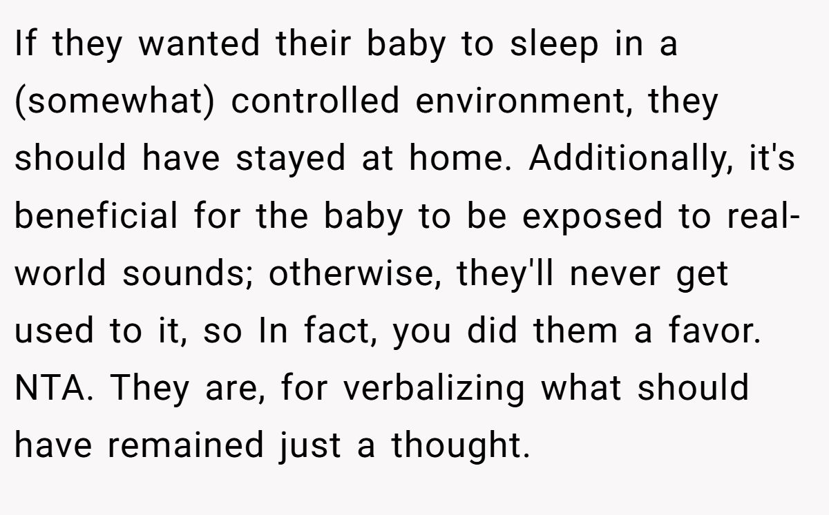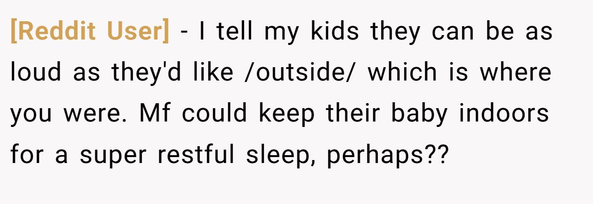 A Reddit user argued kids can be loud outside, so the parents should’ve stayed home.
