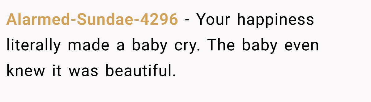 Alarmed-Sundae-4296 humorously noted the baby sensed the proposal’s beauty.