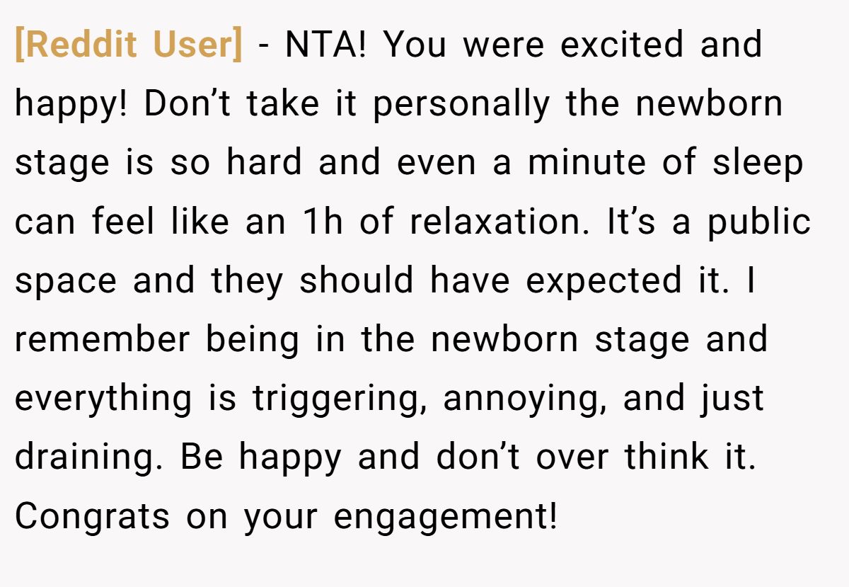 ![He Yelled 'Yes' To His Fiancée—Then Got Scolded For Waking Up A Stranger’s Baby [Reddit User] − NTA! You were excited and happy! Don’t take it personally the newborn stage is so hard and even a minute of sleep can feel like an 1h of relaxation. It’s a public space and they should have expected it. I remember being in the newborn stage and everything is triggering, annoying, and just draining. Be happy and don’t over think it. Congrats on your engagement!](https://dailyhighlight.com/wp-content/uploads/2025/07/43031-14.jpg)