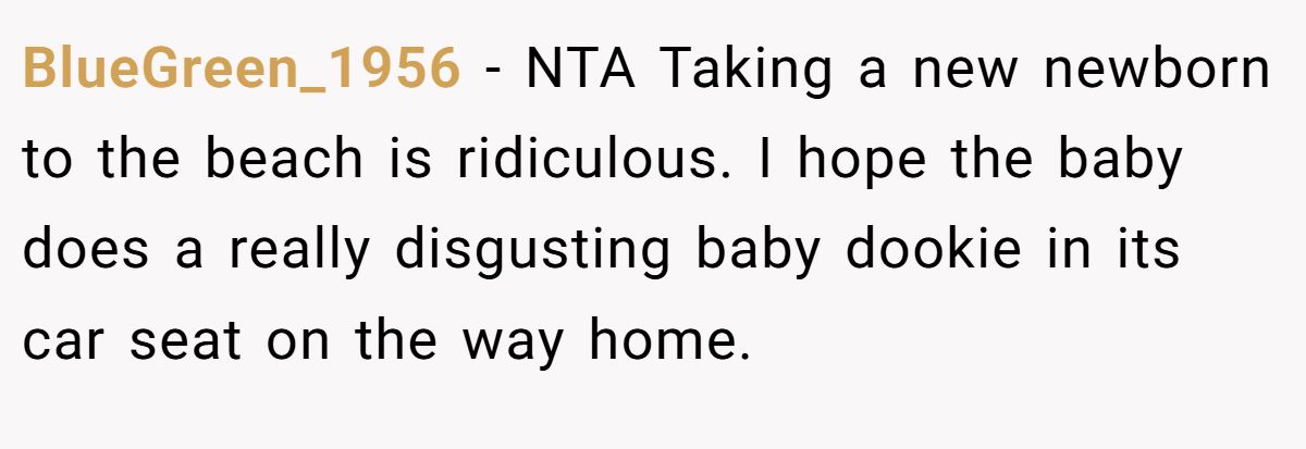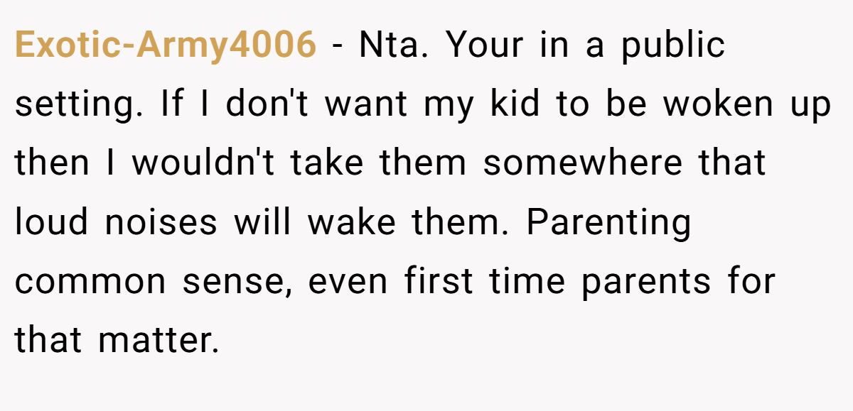 Exotic-Army4006 stressed parenting common sense, saying babies don’t belong at noisy beaches.