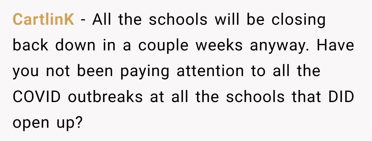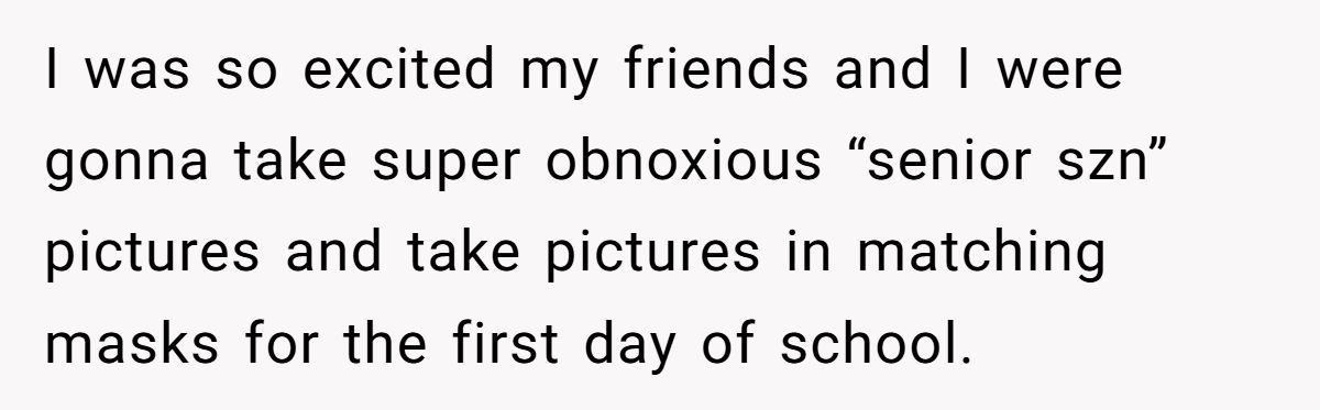 This Redditor had endured enough during the pandemic. Online school was a struggle: her grades slipped, her mental health took a dive, and the isolation crushed her. But she pushed through, looking forward to senior year as her comeback.