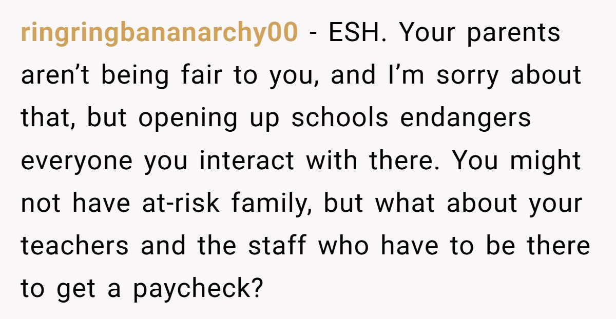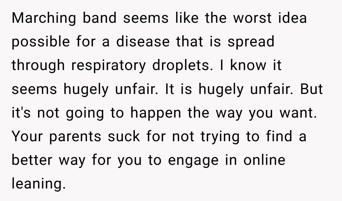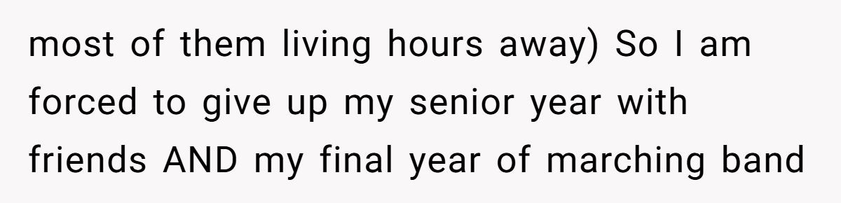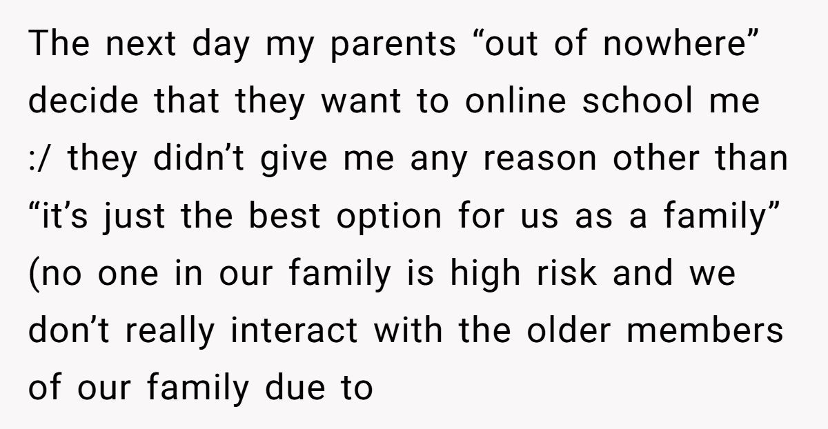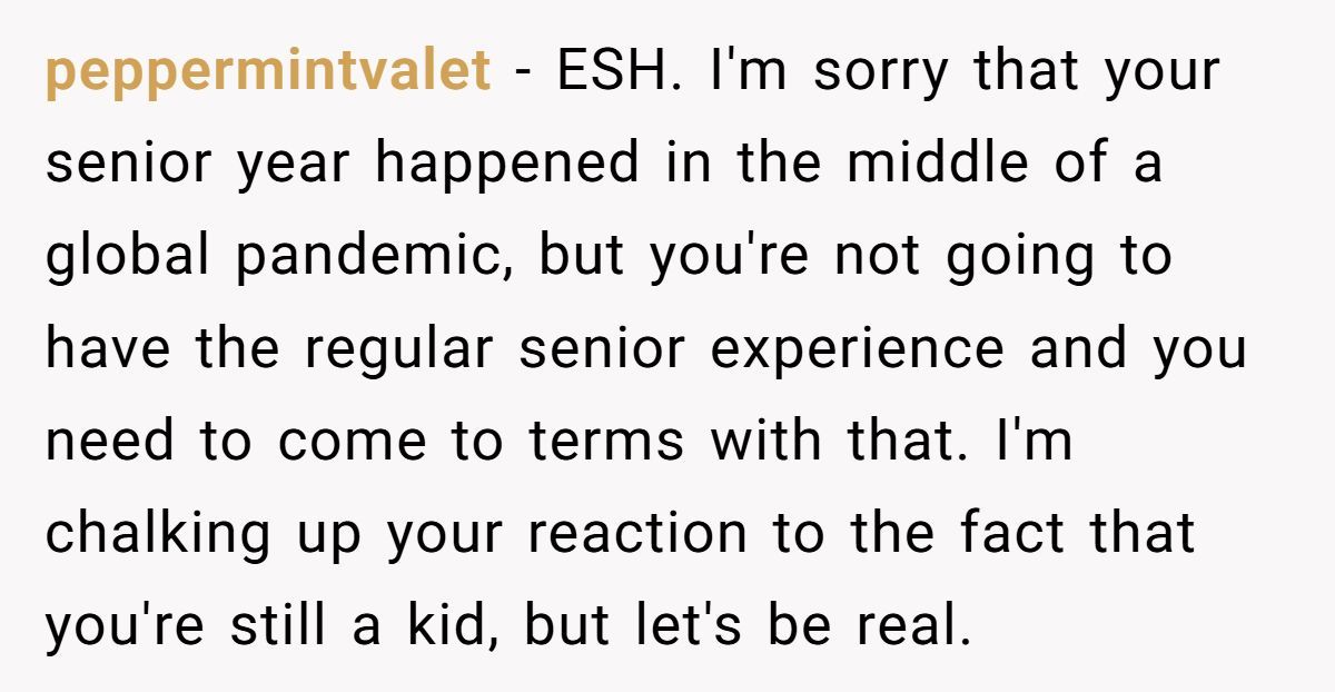 The Redditor didn’t just lose her dream senior year—she lost her voice in the family dynamic. She was expected to smile and pretend everything was fine… while quietly grieving her final shot at normalcy.