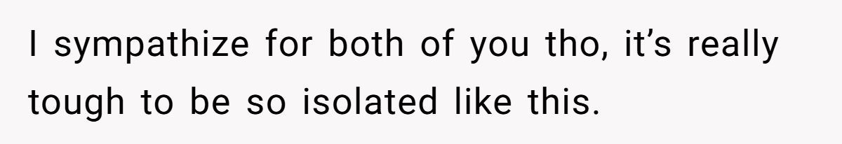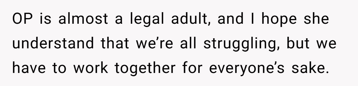 Some Redditors encouraged her to calmly approach her parents again and reframe the conversation: “This decision affects my mental health too. Can we talk about how to meet both of our needs?”