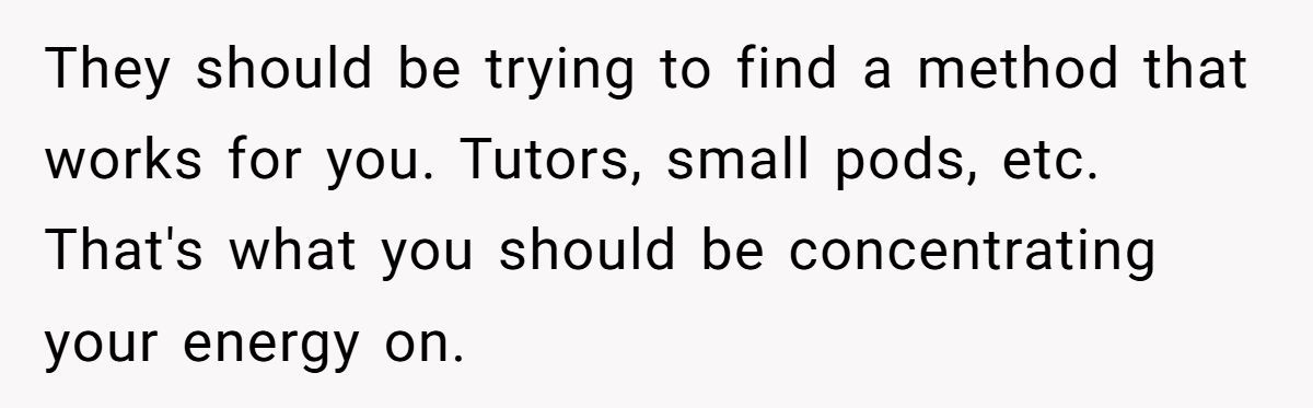 Others urged her to seek support from a school counselor or trusted teacher—someone who could help mediate the situation and advocate on her behalf.