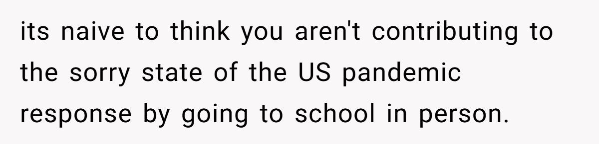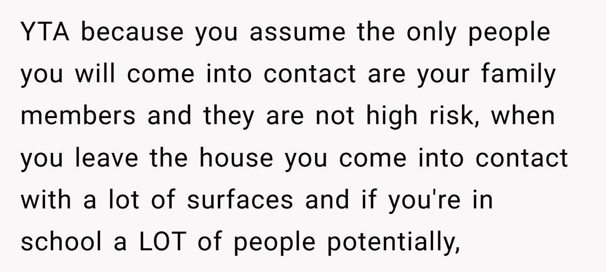 While one commenter raised concerns about broader public health risks, most agreed the OP’s feelings and education were being unfairly overlooked.