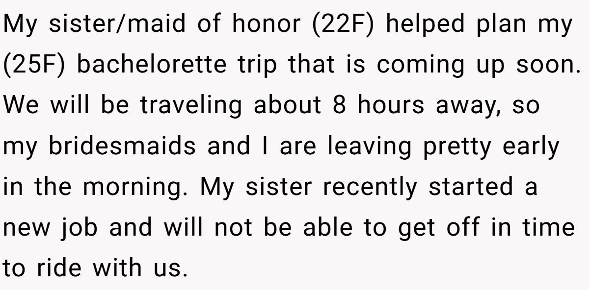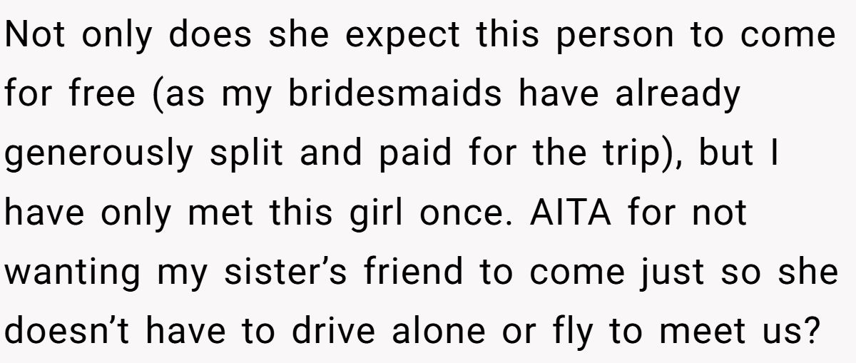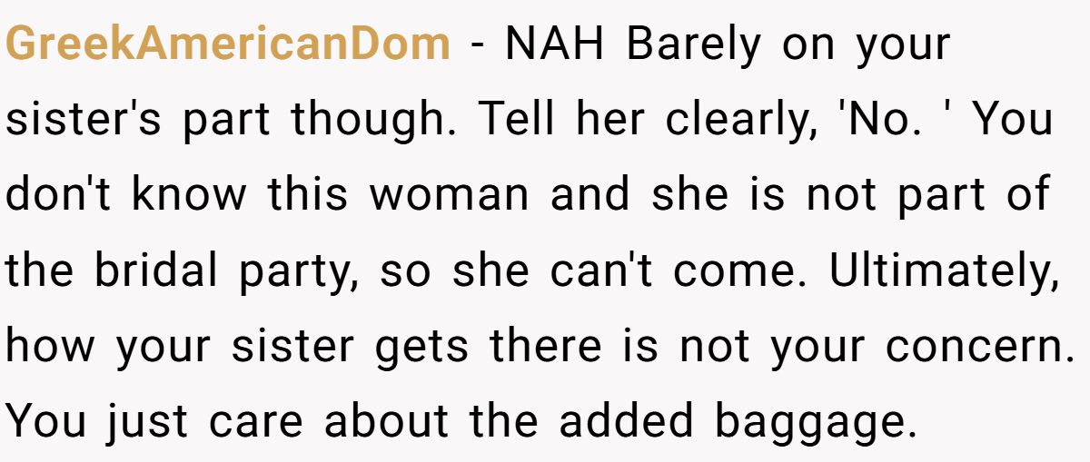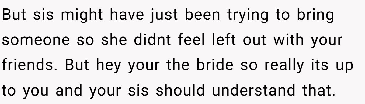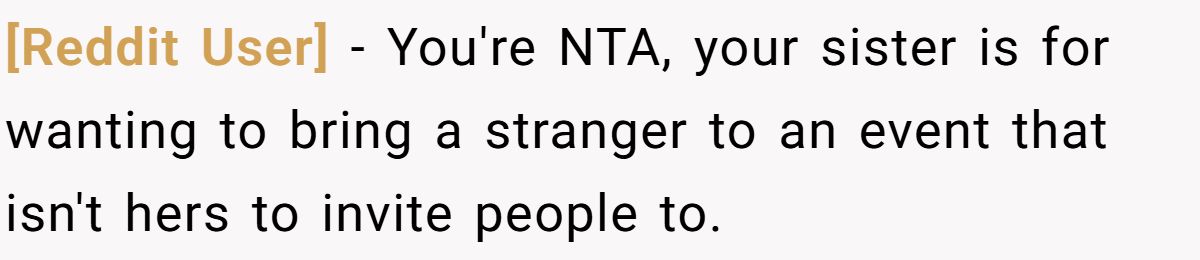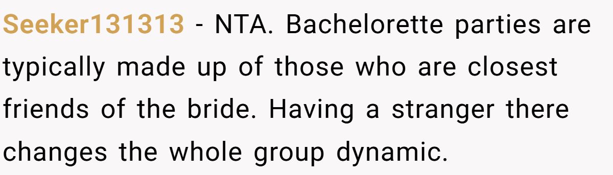 Some Redditors agreed it’s your bachelorette party, and your sister overstepped by trying to bring someone you don’t even know.