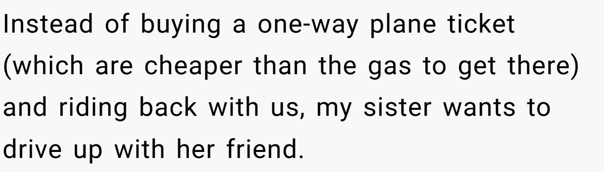 Could she have offered a compromise? Maybe. She wondered later if she should’ve told her sister she was welcome to come late but needed to cover the friend’s expenses herself.