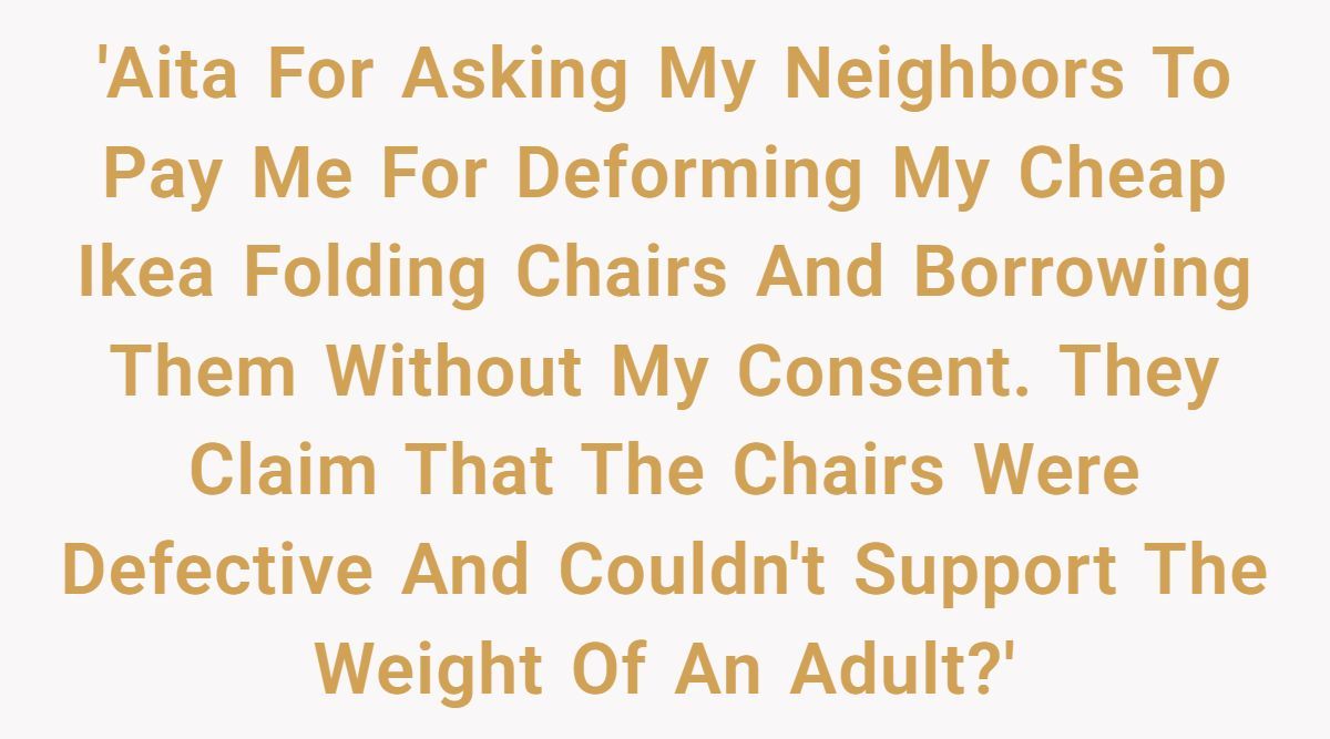 What started as a neighborly favor ended up folding under pressure—literally and figuratively. The Redditor’s bent chairs became the symbol of broken trust, and their $15-per-chair demand wasn’t just about furniture, it was about standing up for personal boundaries.
