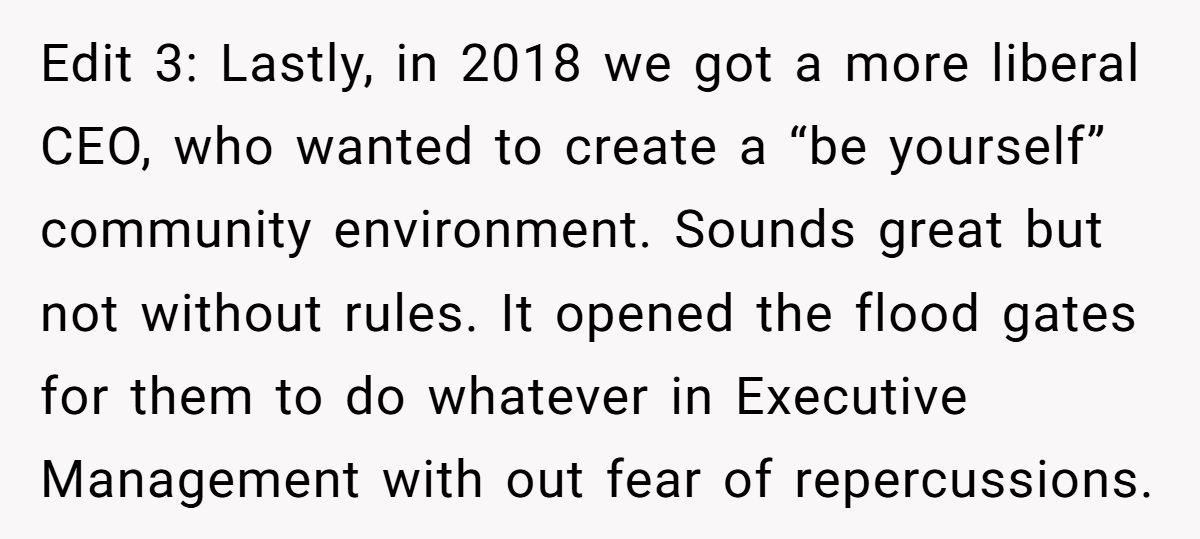 If the CEO is serious about reform, this might be the perfect moment for an ethics refresh. Because when employees are more generous than the person running HR? That’s not just irony—it’s a red flag.