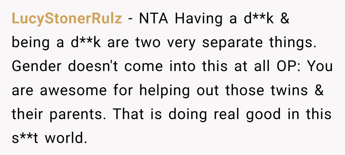 So let’s unpack the “gender” card. Was it sexism that drove coworkers to support a struggling mom of twins? According to sociologist Dr. Lisa Wade, not likely. “In communities, people give more freely when the need feels involuntary—like illness or sudden loss—versus elective choices,” she wrote in The Atlantic.