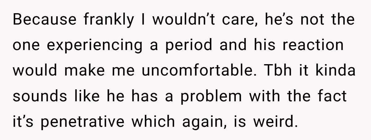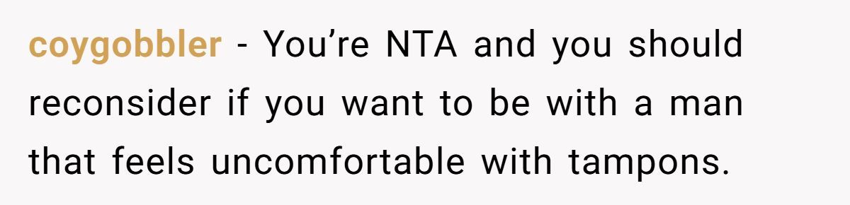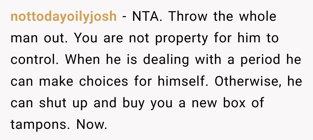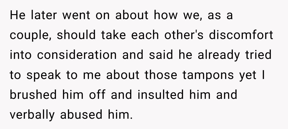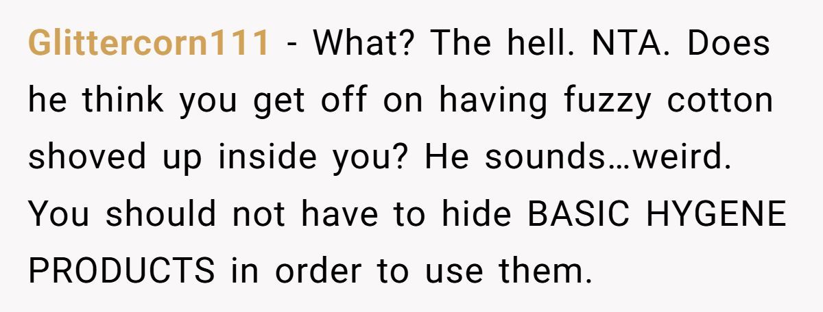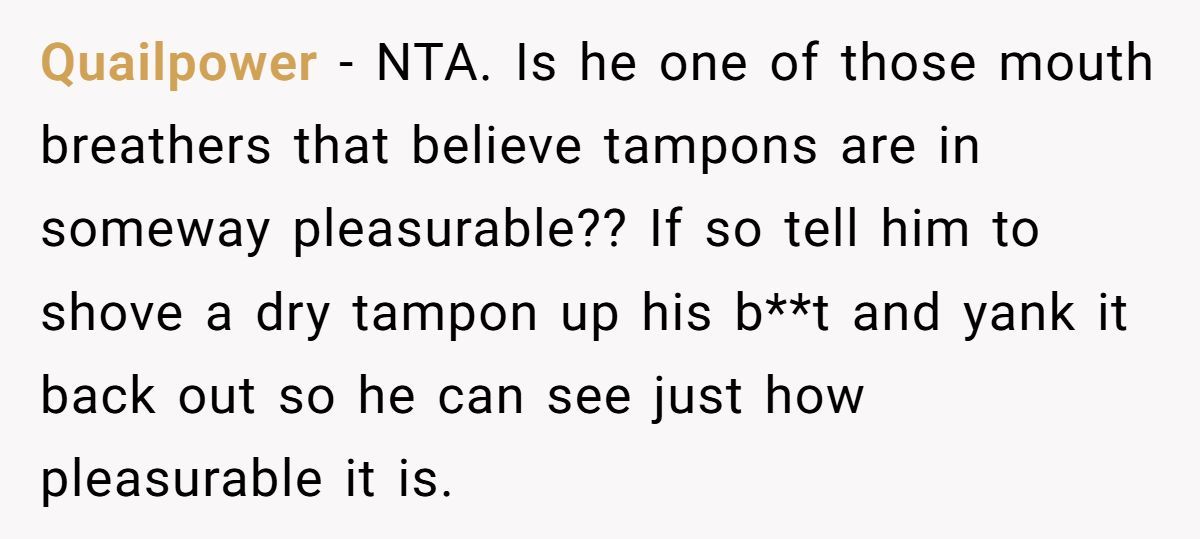 These Redditors defended OP’s right to use tampons, mocking the husband’s discomfort as irrational and intrusive