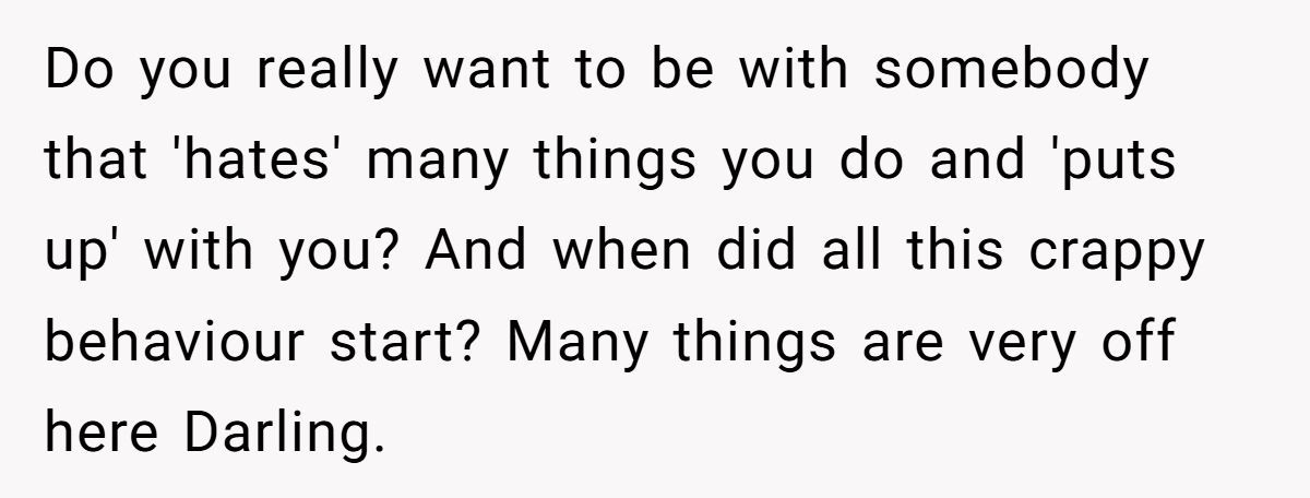 Ultimately, relationships thrive when both partners respect that not every discomfort deserves accommodation. Sometimes, “getting over it” is the healthiest option of all.