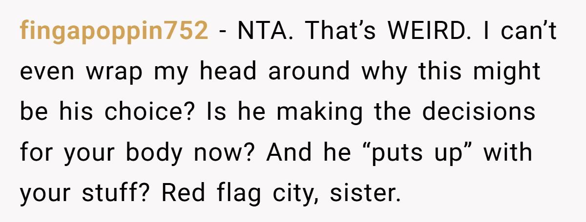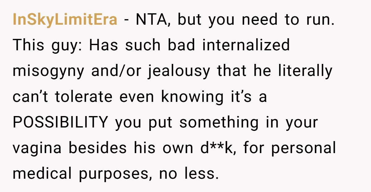 This isn’t a debate about brands or sizes—it’s a full-blown clash of bodily autonomy and bizarre jealousy. And when she finally stood up for herself, he turned it around and called her the abuser. Reddit exploded in outrage, and honestly? Same. Let’s dive in.