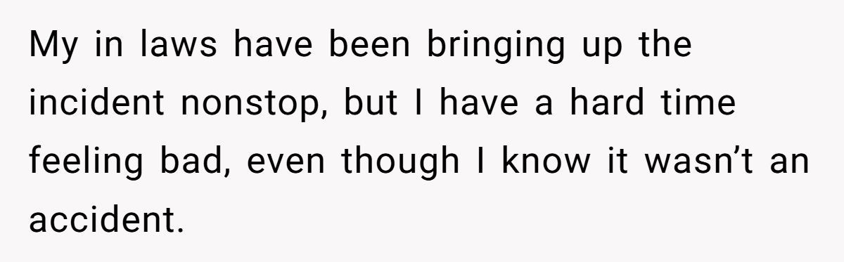 One user warned against admitting the spill was intentional, as it could fuel the in-laws’ complaints indefinitely