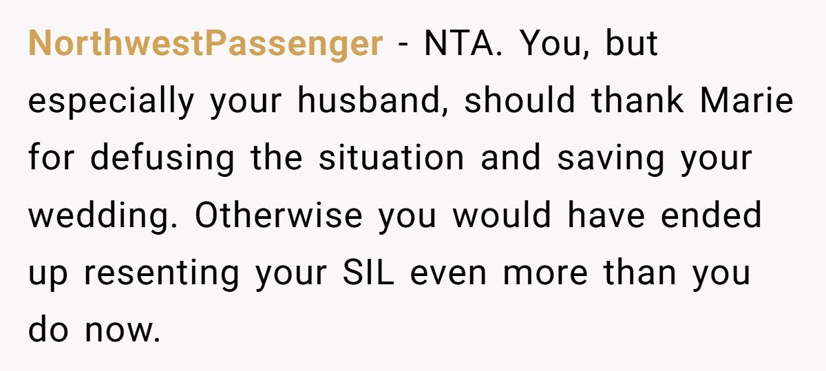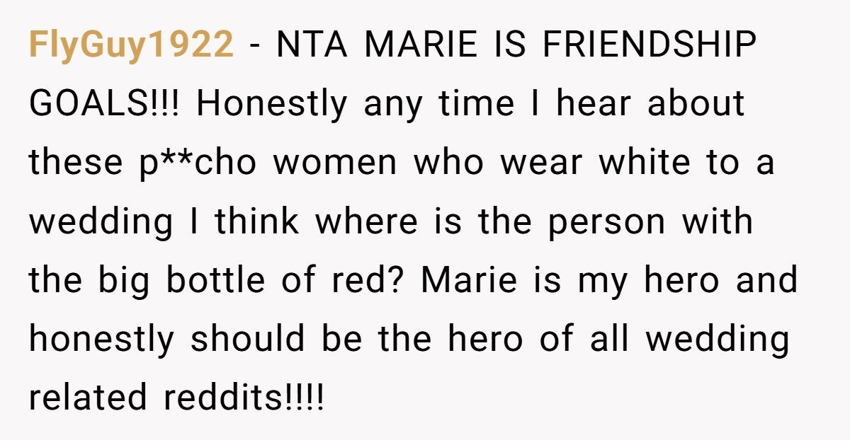 Users applauded the husband for backing the Redditor, reinforcing that Marie’s action saved the wedding’s vibe