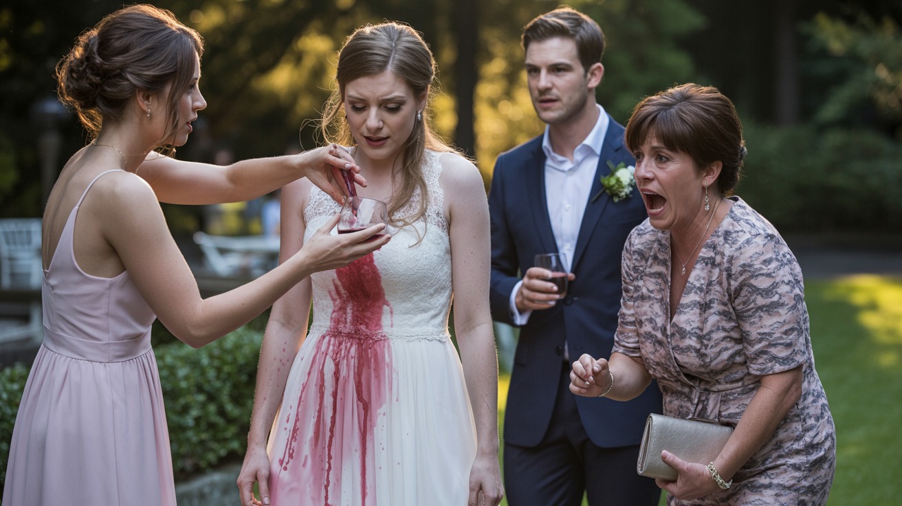 Now, enter Marie—the best friend. Her wine spill was probably no accident, but from a strategic standpoint, it was brilliant. It didn’t involve yelling, confrontation, or dragging Alice out of the venue. It was a red splash of justice, and it worked. The wedding proceeded, the bride kept her cool, and Alice had to change into a more appropriate outfit.