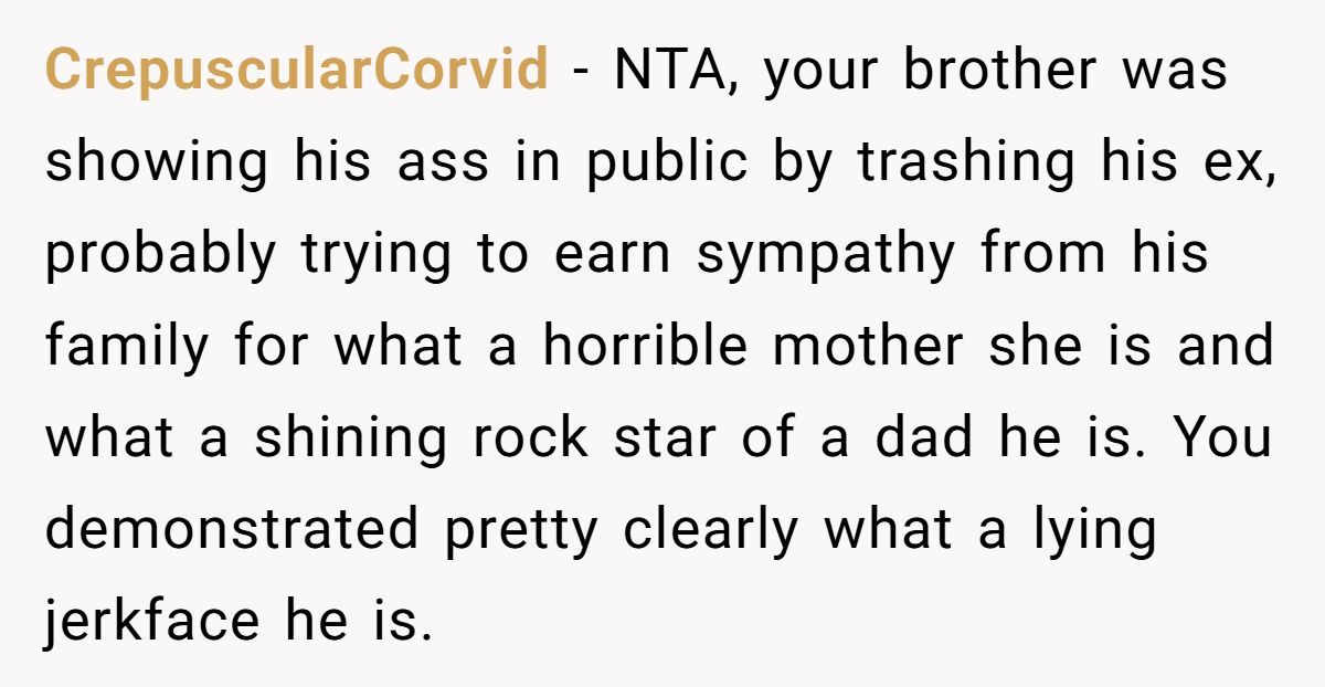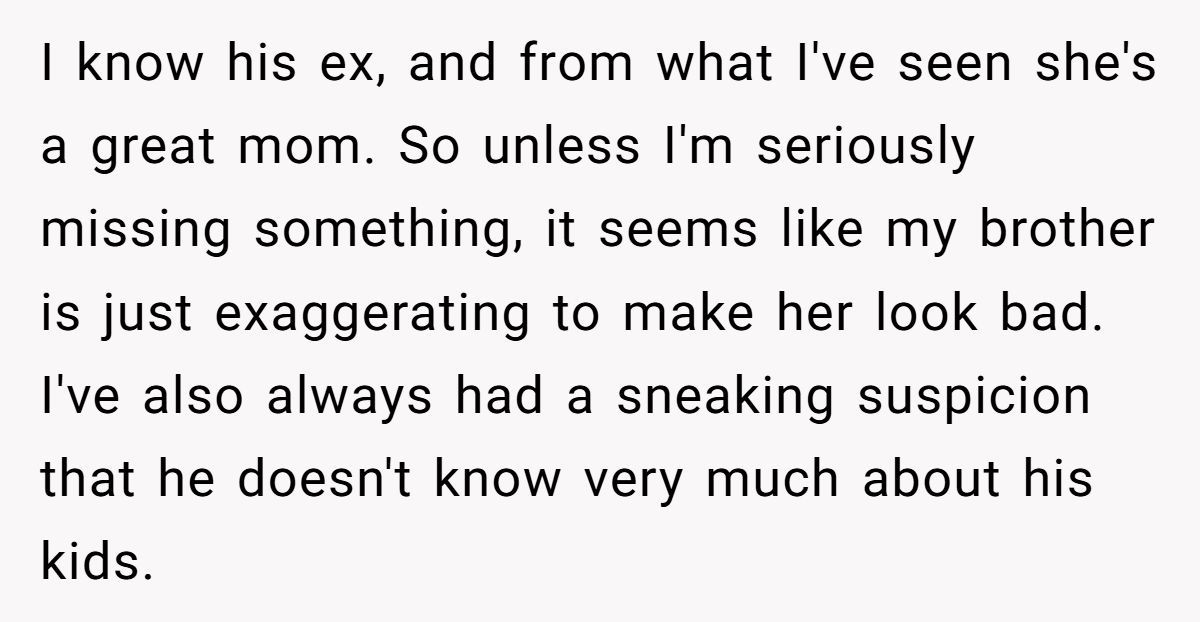 A Redditor walked into a cousin-style interrogation that would feel more like a roast than a family reunion. His brother had loudly proclaimed that his ex-wife was a terrible mother who didn’t “know anything” about their kids. Enough was enough.