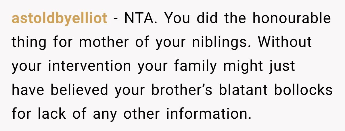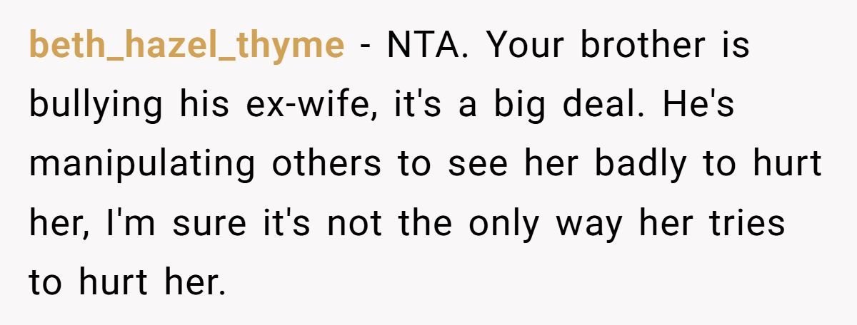 These Redditors backed OP for defending the ex, emphasizing the need to counter her brother’s bullying for the kids’ sake