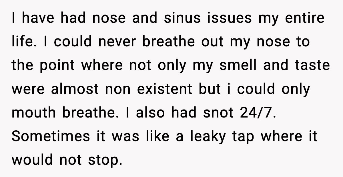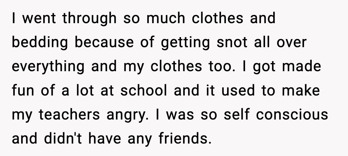 Imagine spending your entire childhood gasping for air, mocked for chronic snot, and told there was “no cure.” Now imagine discovering your parents knew how to fix it—but decided it was “too much work.”