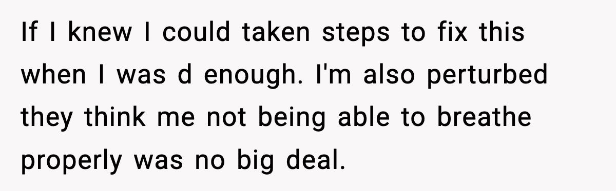 A user raged at the parents’ entitlement, shocked they downplayed her breathing struggles