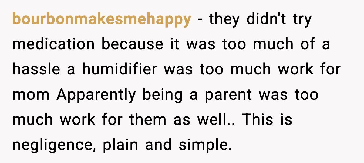 A user mocked the parents’ laziness, noting a cheap humidifier could’ve changed everything