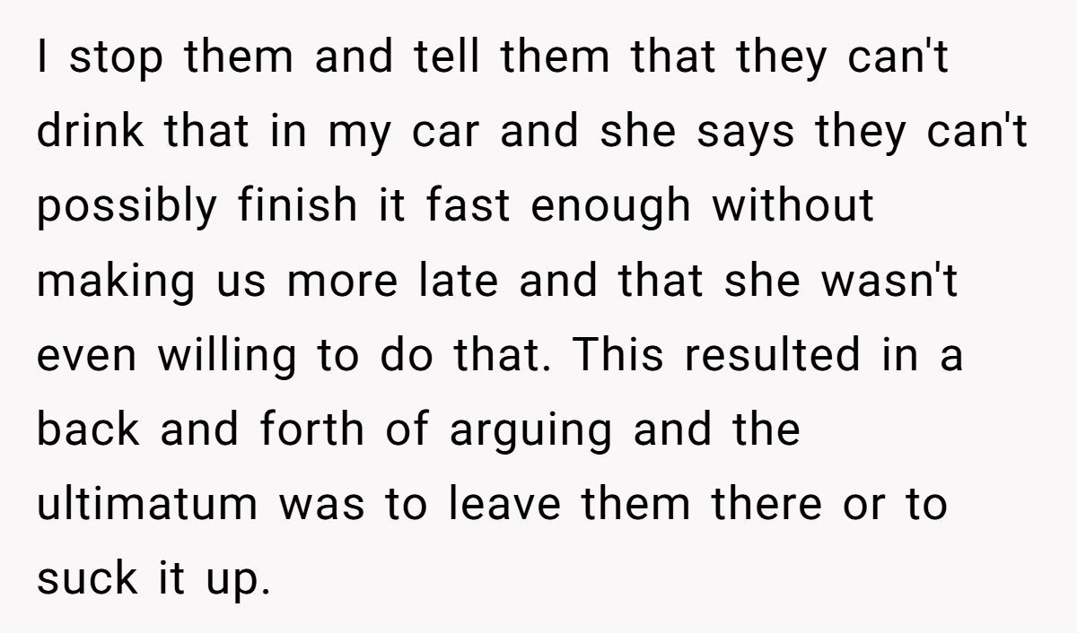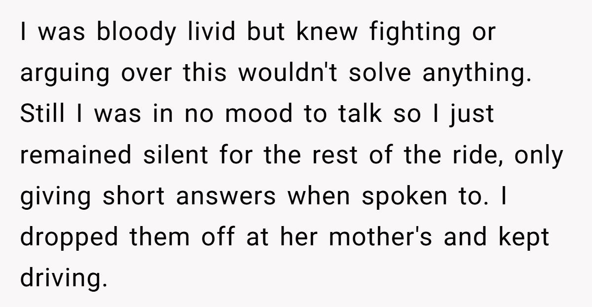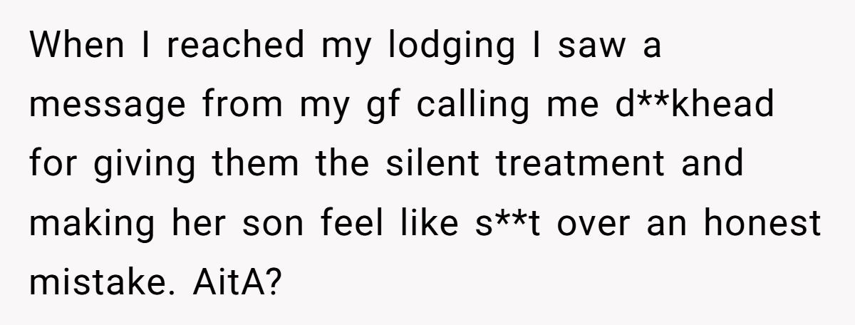What was meant to be a quiet favor turned into an icy cold drive, and by the time he dropped them off, the tension was thicker than the slushie soaking his back seat. When his girlfriend texted later calling him a “d**khead” for making her son feel bad, he turned to Reddit to ask: was staying silent the wrong move?