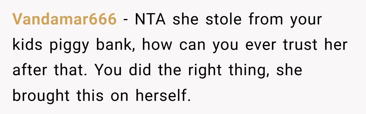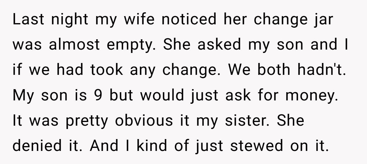 A Redditor walked into what felt like a moral showdown—not just over dirty laundry or annoying habits—but over a betrayal aimed at a child’s trust. His sister had been living with his family, camping on their goodwill. Then she emptied his son’s piggy bank.