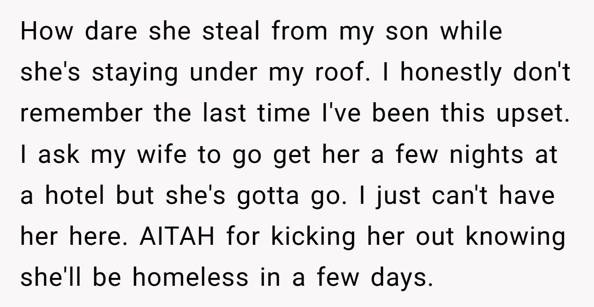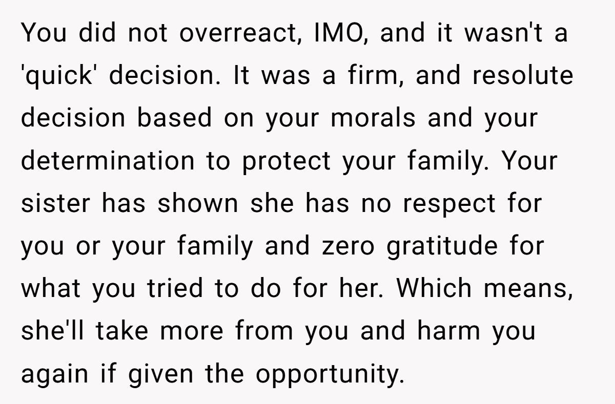 Was OP justified to evict her? Absolutely. Was it done in anger? Yes. Was it still necessary? Solidly, yes. At what point does family obligation become emotional abuse? Is earning warmth a requirement—even from a thief? Share your hot takes below!