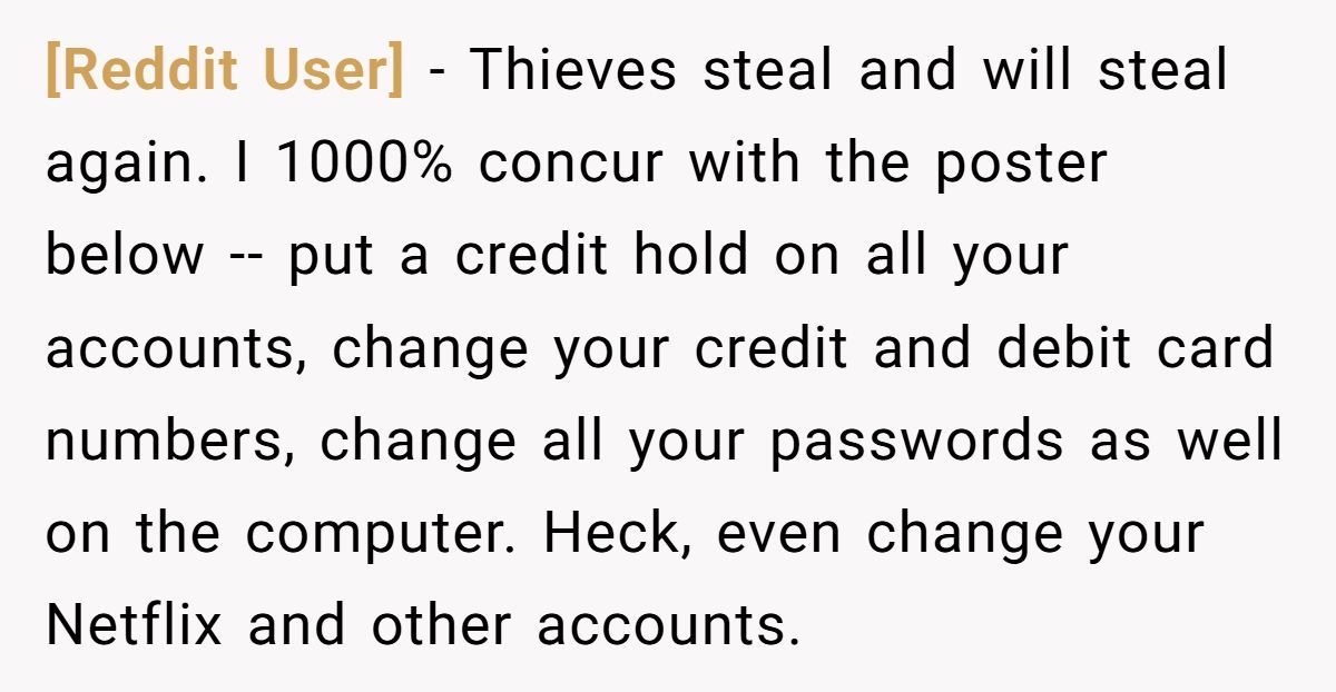 These Redditors urged the dad to secure his finances, change locks, and protect his family, suspecting deeper issues like addiction