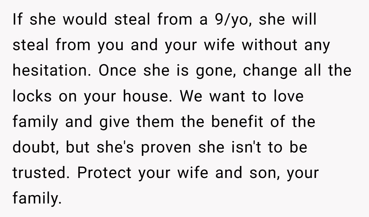 This story reveals something deeper than stolen coins—it’s about betrayal, trust, and knowing where compassion ends. Yes, sending your sister out into the cold is gut-wrenching. But allowing her to stay after she stole from your son? That could scar all of you more deeply.