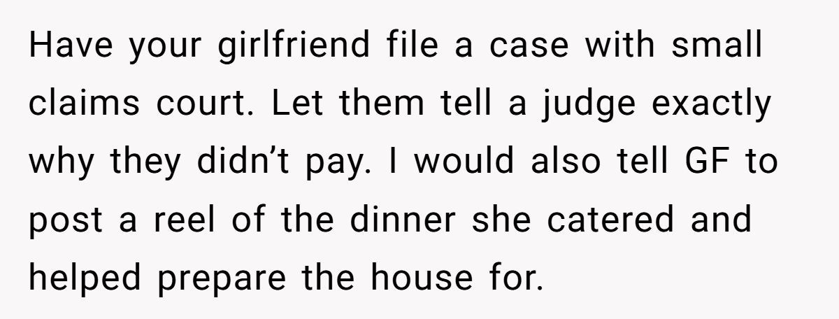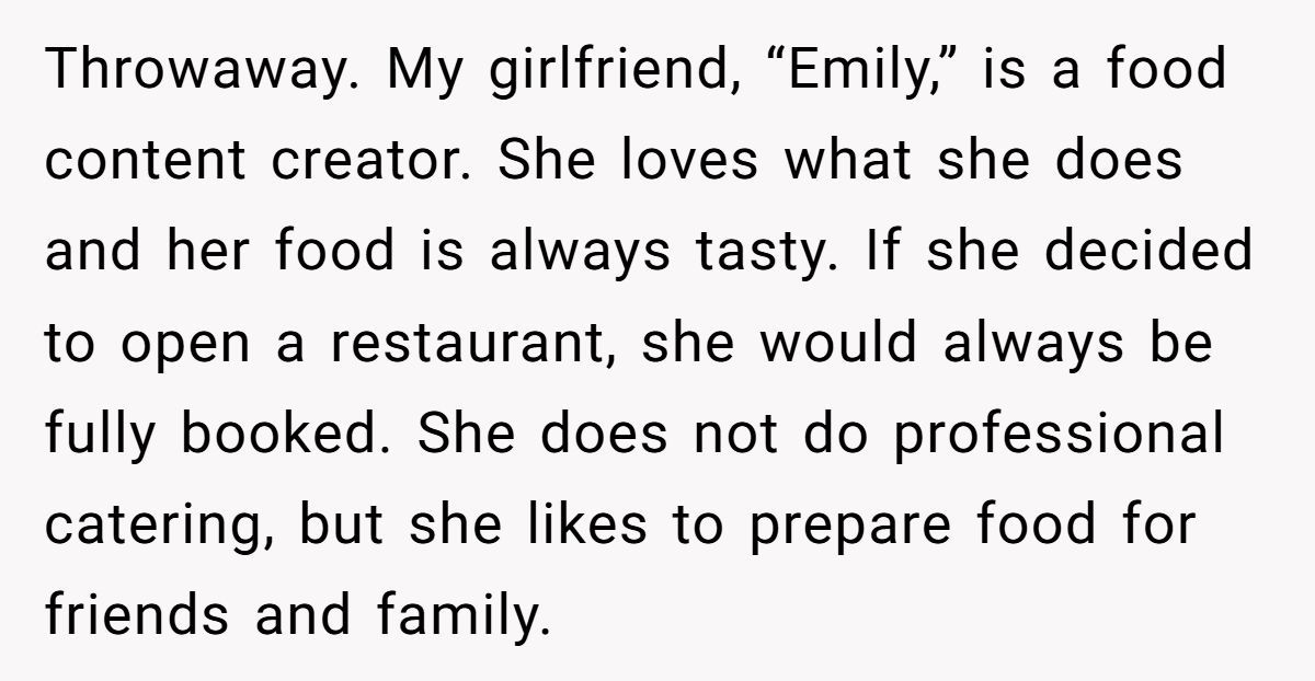 His girlfriend, Emily, is a passionate food content creator who poured her heart and soul into preparing an elaborate dinner party for his sister, Paige. But instead of gratitude, she was met with racist jokes, withheld payment, and zero remorse. So, when the same pair came knocking, dripping wet and shameless, OP served them some cold, hard boundaries. Curious how it all played out? Dive into the original story below!