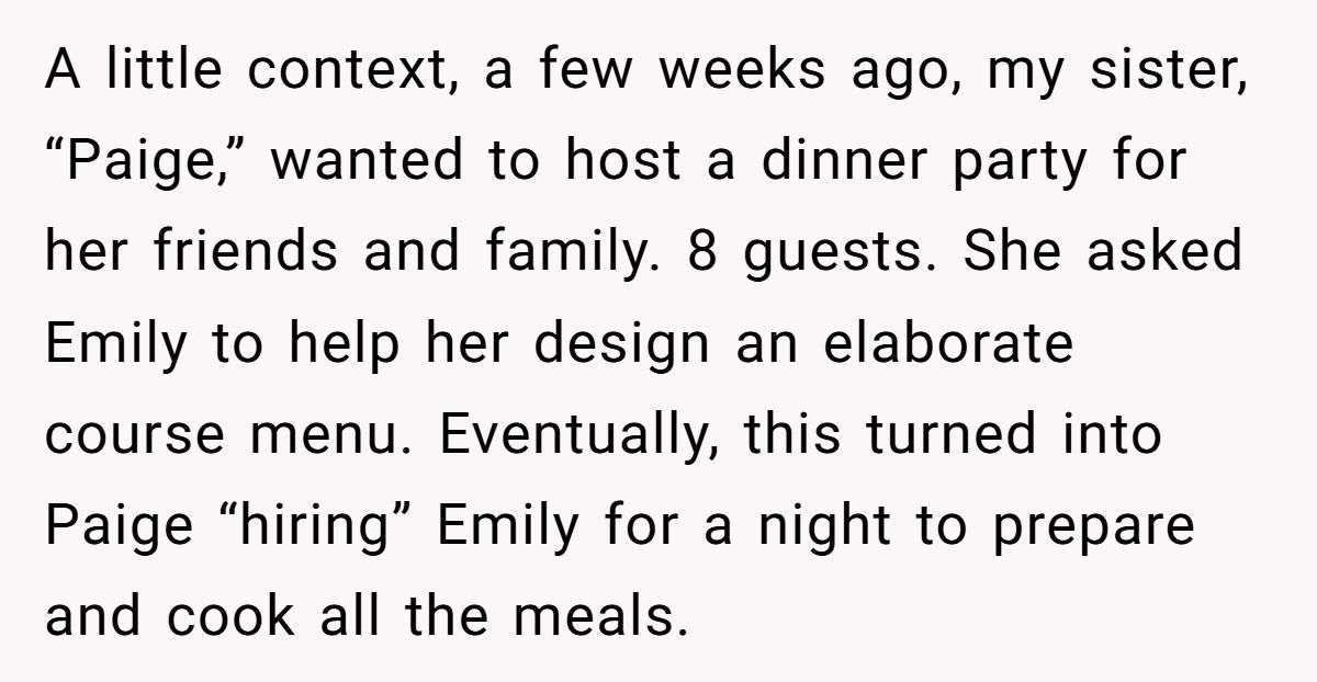 Hosting a dinner party is stressful enough—now imagine doing it solo, unpaid, and while overhearing your clients mock your race and professionalism. That’s the dish Emily was forced to swallow, and Reddit users aren’t the only ones who found it hard to digest.