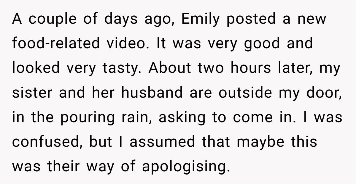 A Redditor dished out the ultimate “closed door” treatment when his sister and her husband showed up during a rainstorm—hoping to score free food from the very woman they had ridiculed and refused to pay just days earlier.