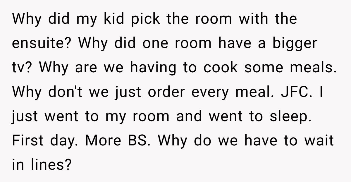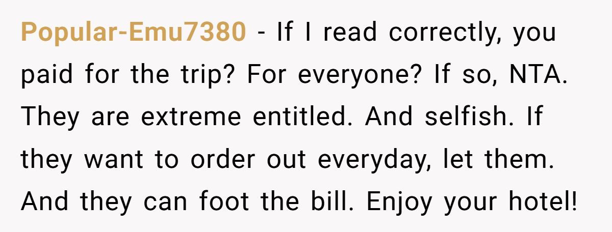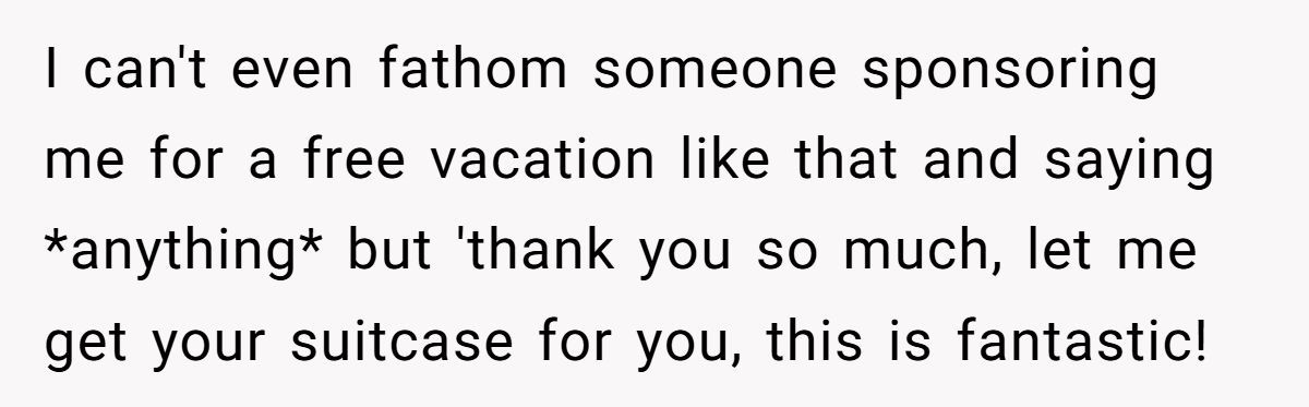 Commenters labeled the family’s demands as “choosing beggars” behavior, shocked they’d nitpick a fully funded vacation