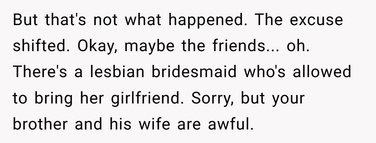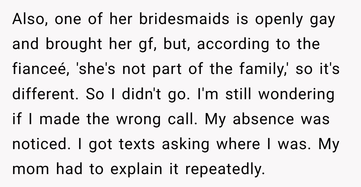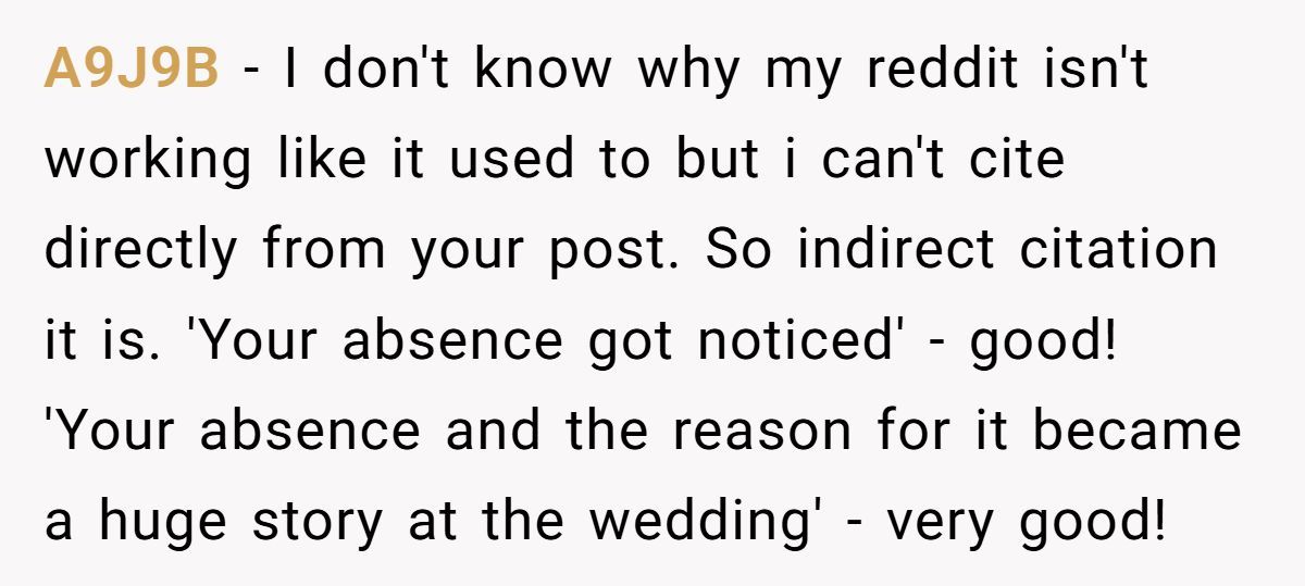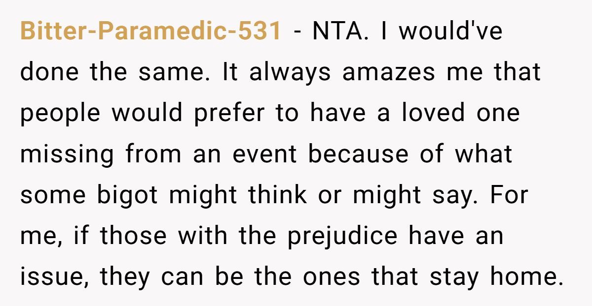 OP made his decision painfully clear: love and authenticity outweigh attendance. He didn’t simply skip a wedding, he reclaimed his self-worth.