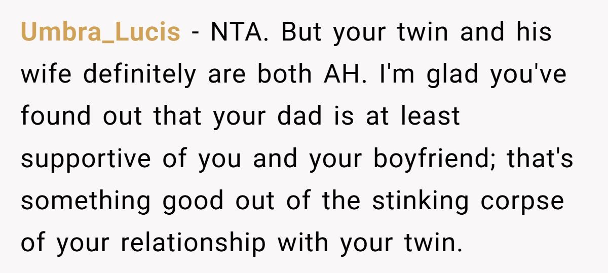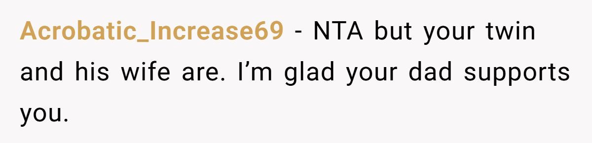 This user cheered OP’s no-show, saying it exposed the twin’s hypocrisy and made a bold statement about respect