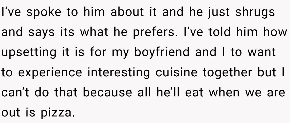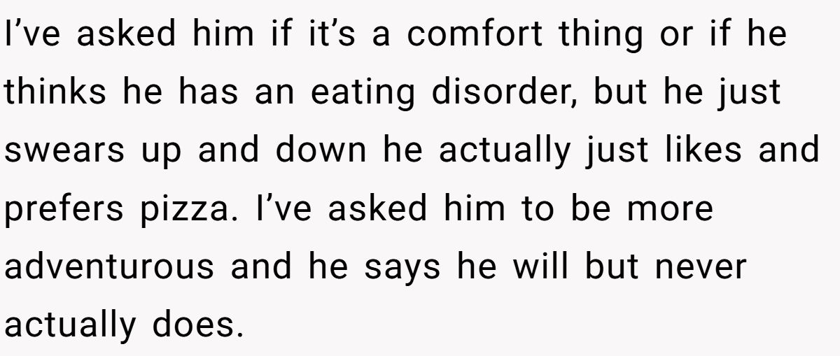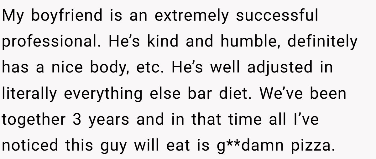 Some questioned the boyfriend’s diet and suggested the boyfriend’s pizza-only diet might be a restrictive eating disorder