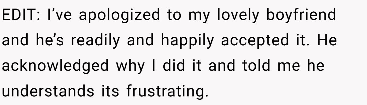 It’s commendable that the poster eventually apologized and that her boyfriend acknowledged her frustration. Their willingness to talk it through might signal emotional maturity on both sides—something many couples lack when preferences turn into pressure.