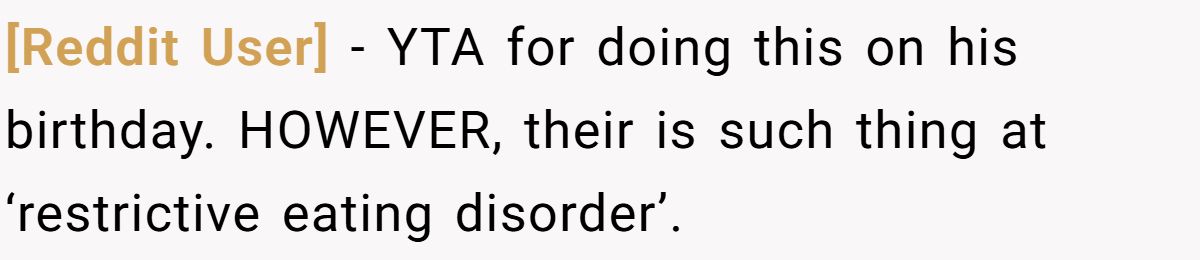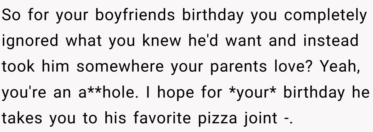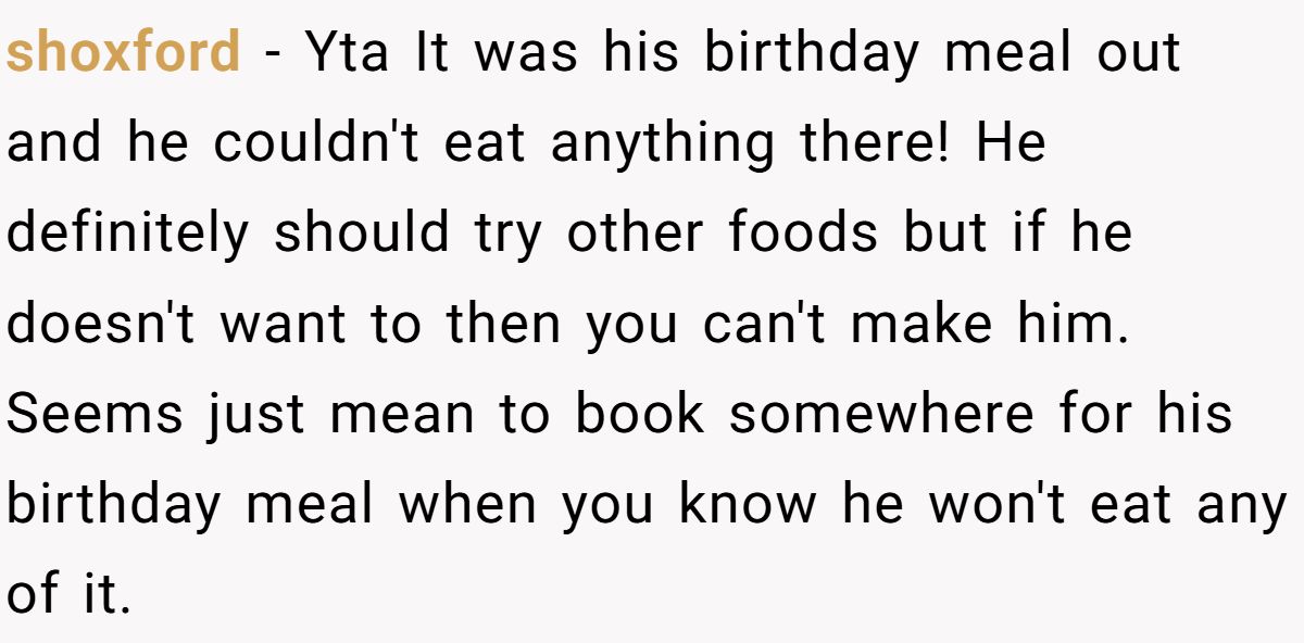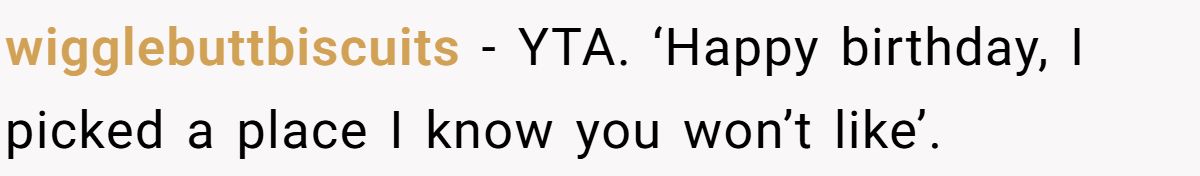 These users criticized the birthday choice, called it mean to choose a restaurant she knew he wouldn’t enjoy for his birthday