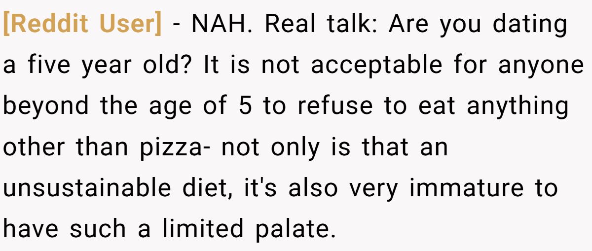 ![Man Refuses To Eat On His Birthday After Girlfriend Picks A Restaurant Without Pizza—Because That’s All He Eats [Reddit User] − NAH. Real talk: Are you dating a five year old? It is not acceptable for anyone beyond the age of 5 to refuse to eat anything other than pizza- not only is that an unsustainable diet, it's also very immature to have such a limited palate.](https://dailyhighlight.com/wp-content/uploads/2025/07/47143-20.jpg)