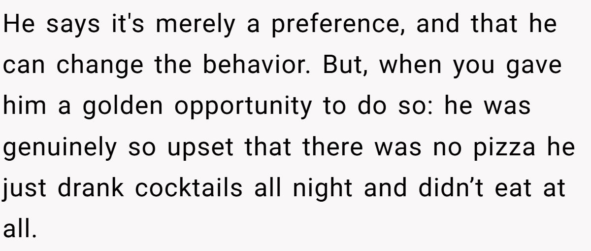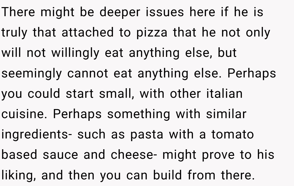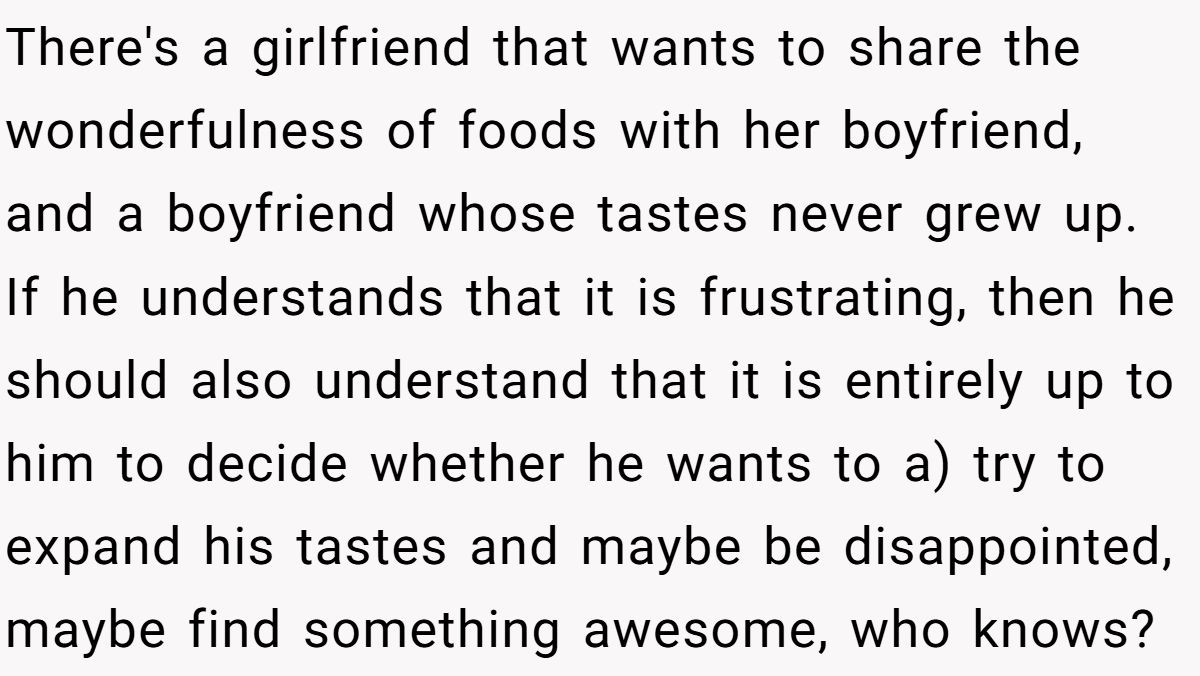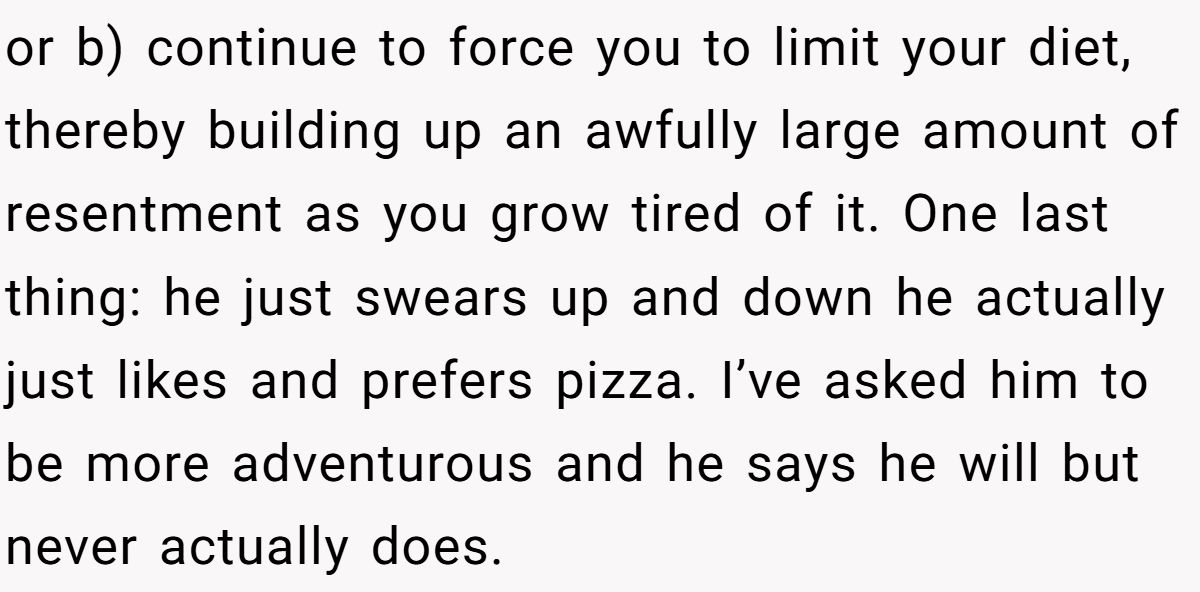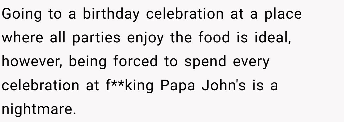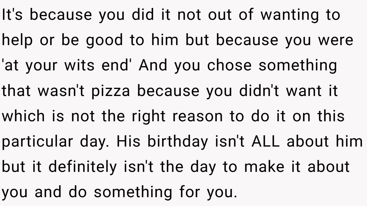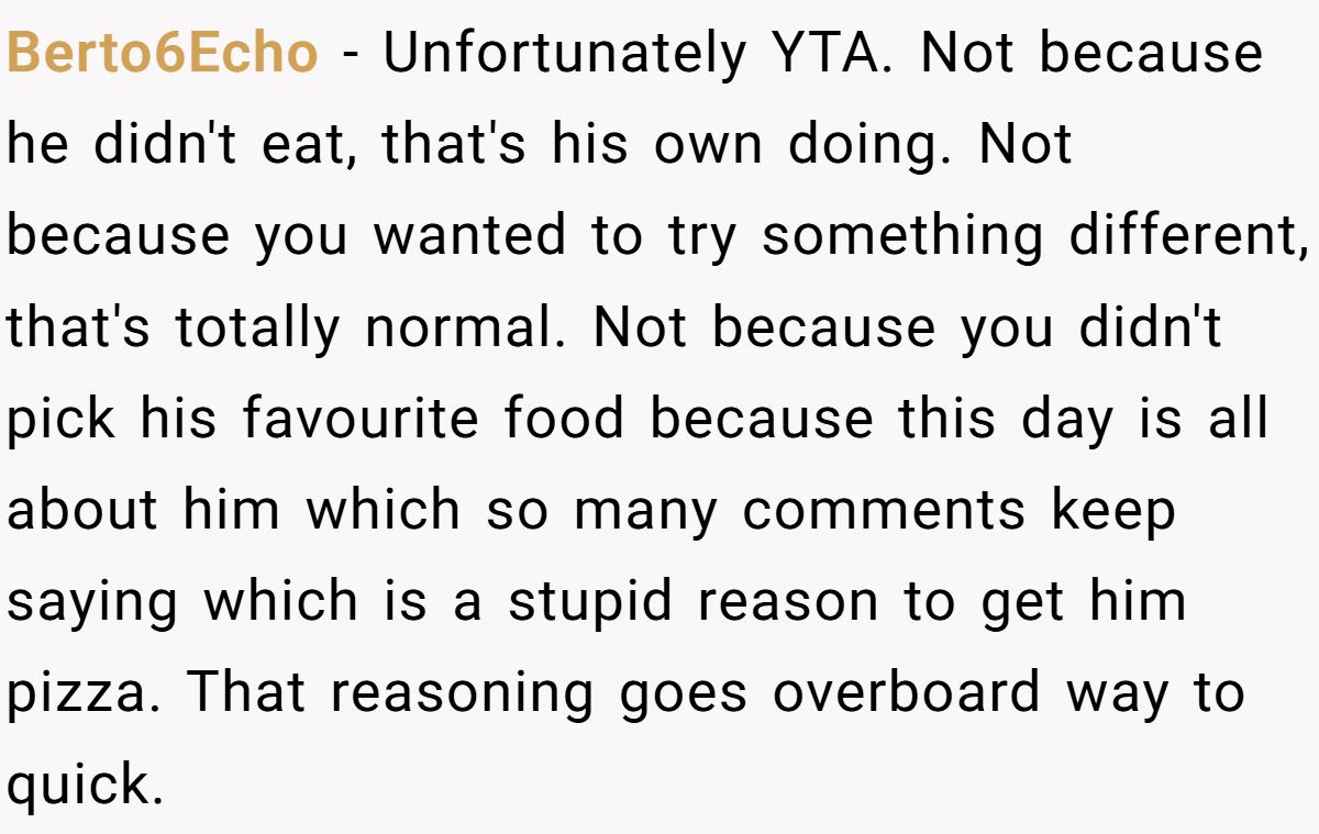 So who’s really at fault here? The woman who tried to break the pizza cycle on a symbolic day? Or the man whose palate hasn’t evolved past a pizzeria? Most Redditors leaned toward calling her out, but others hinted at deeper psychological roots that deserve empathy—not exasperation.