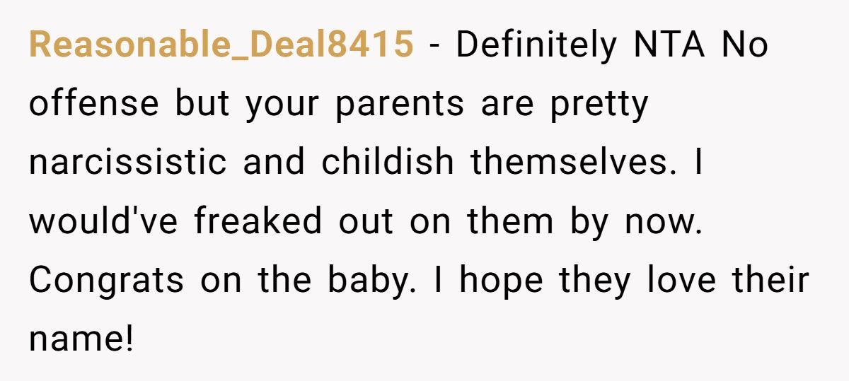 Commenters supported his right to name his child freely, noting traditions aren’t mandatory and his parents’ expectations are narcissistic