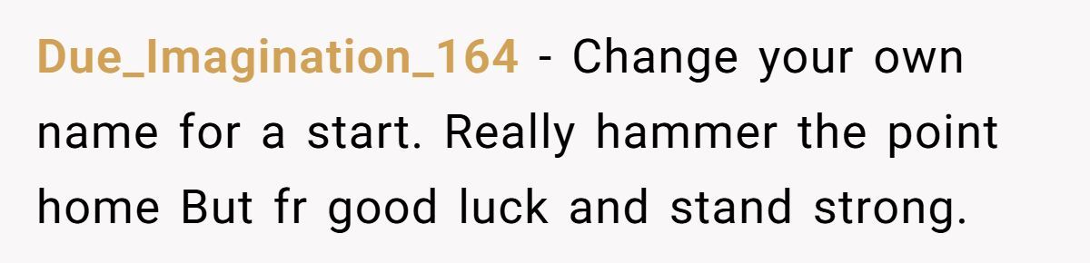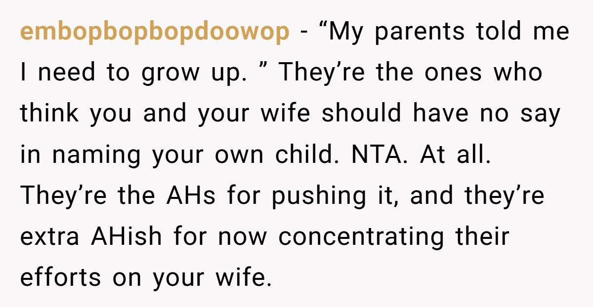 A commenter suggested changing his own name to emphasize his stance, urging him to stand firm against his parents’ interference