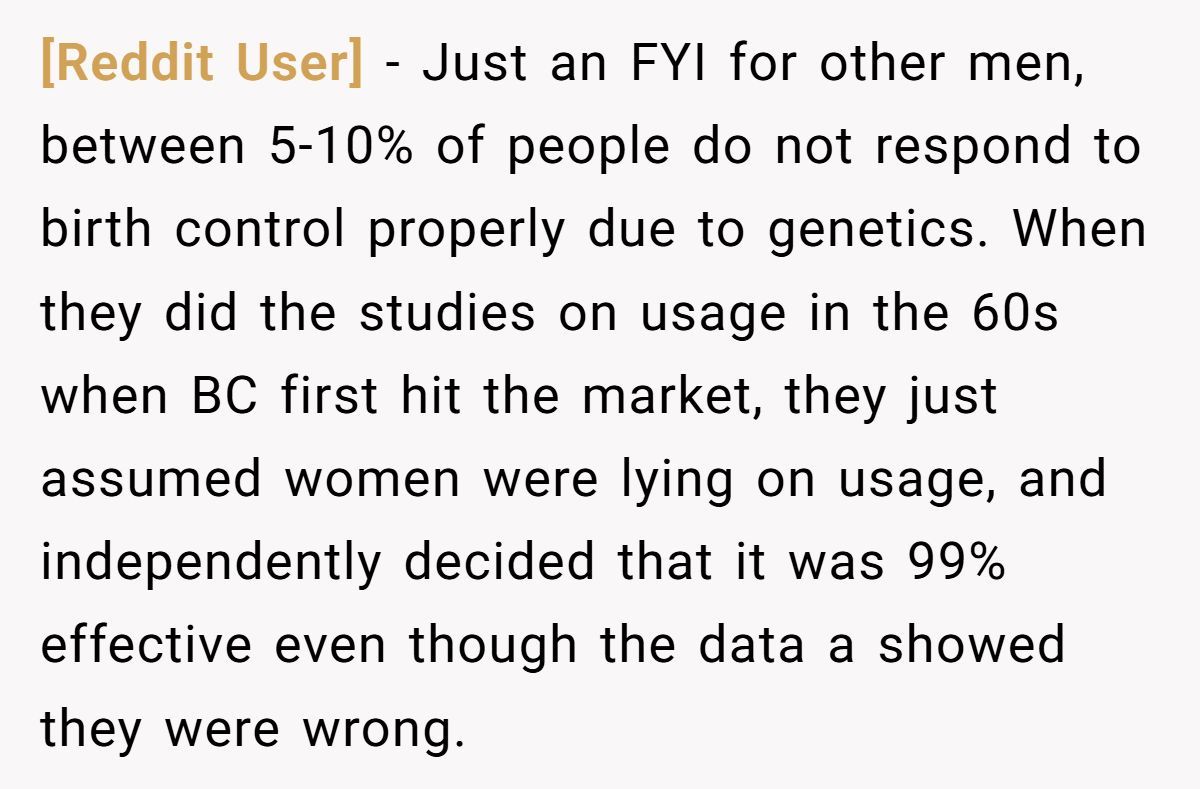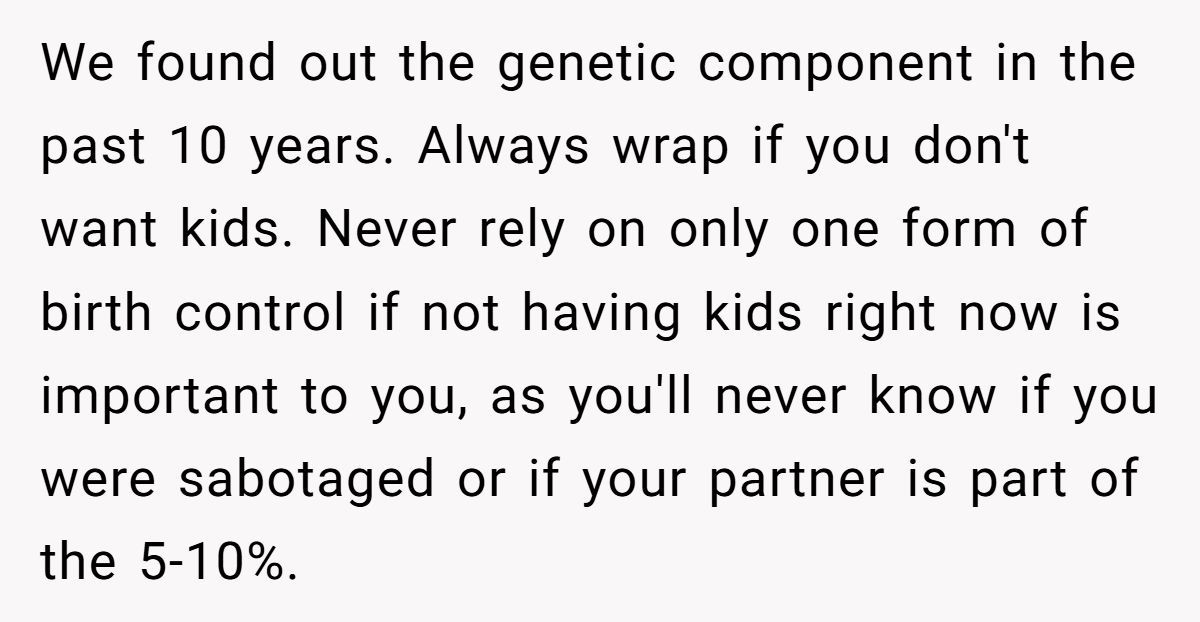 One user highlighted that 5-10% of people don’t respond to birth control due to genetics, advising dual protection