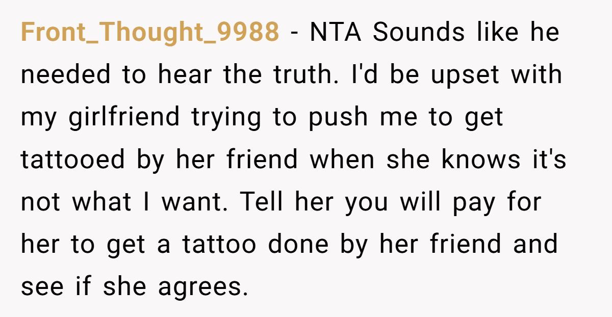 The issue here isn’t just about art—it’s about boundaries. The artist’s refusal to respect a polite “no” crossed a line. According to relationship expert Dr. John Gottman, “Pushing someone past their comfort zone in personal decisions erodes trust.” And for something as permanent as a tattoo, pressure from friends is not just unwelcome—it’s inappropriate.
