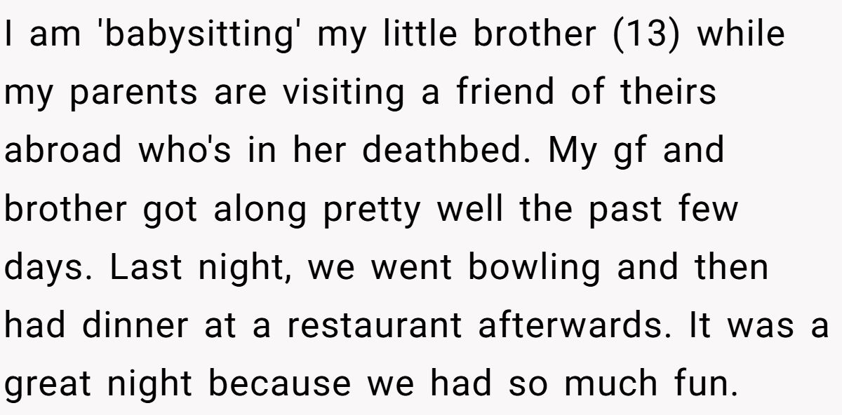 So what do you think? Did the Redditor act like a responsible sibling under pressure, or did he let anger cloud his judgment? And was the girlfriend’s response an act of principle—or petty overreach? Share your take in the comments below!
