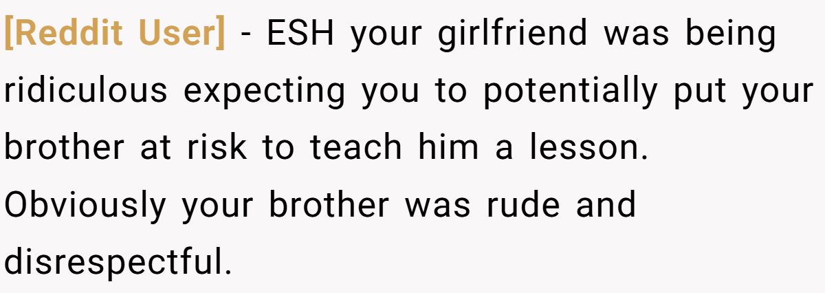 Disagreements among family members are common—but throw in a teenager, a girlfriend, and a hint of misogyny, and the cocktail gets messy fast. In this situation, the Redditor had to make a snap judgment: protect his girlfriend’s dignity or ensure his little brother’s safety. He tried to do both. But in the heat of it, he may have gone too far.